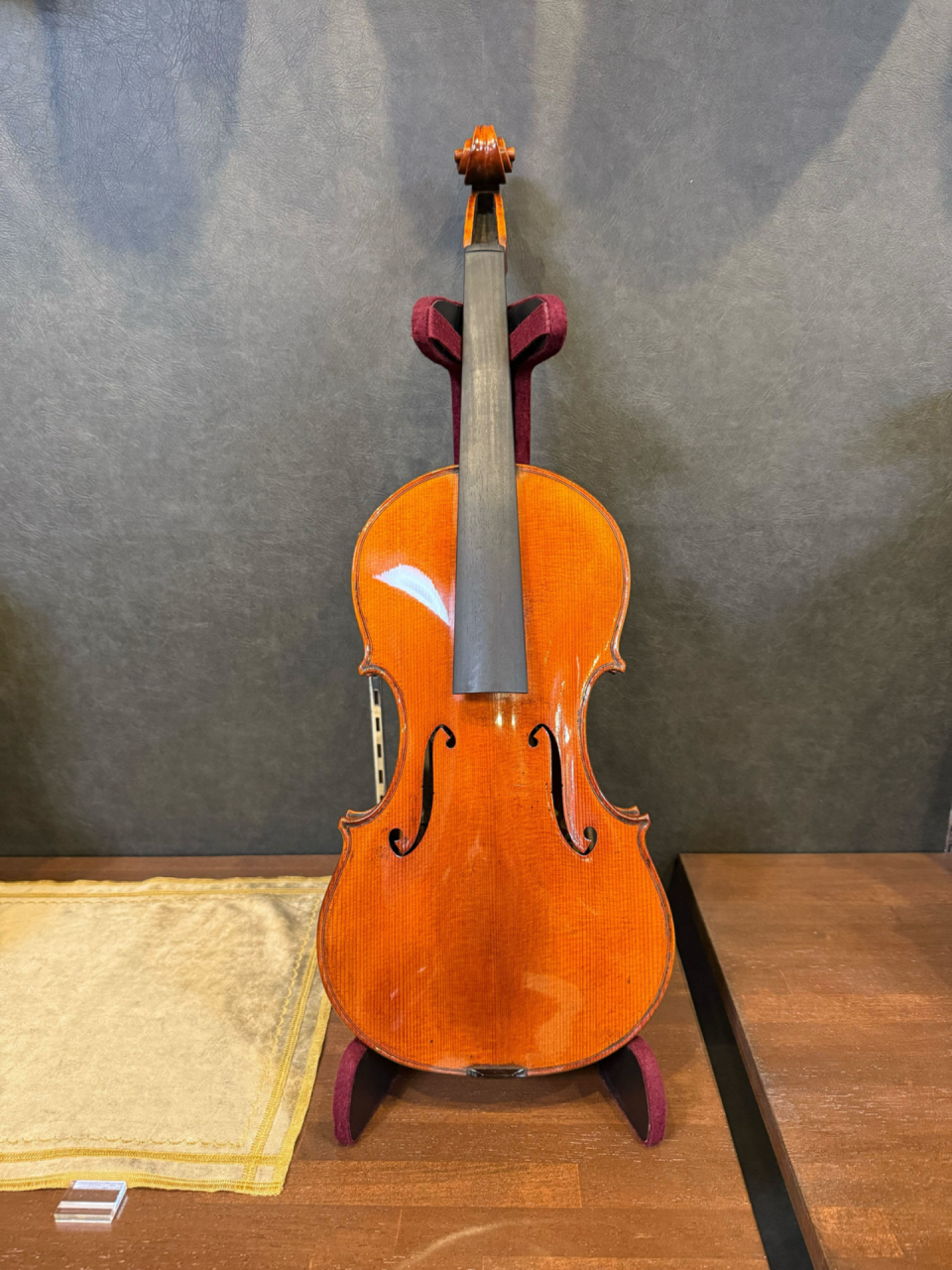 この春出来立てのヴァイオリン。ガルネリのカノーネ砲モデルの迫力を手に取ってごらんくださいませ。
