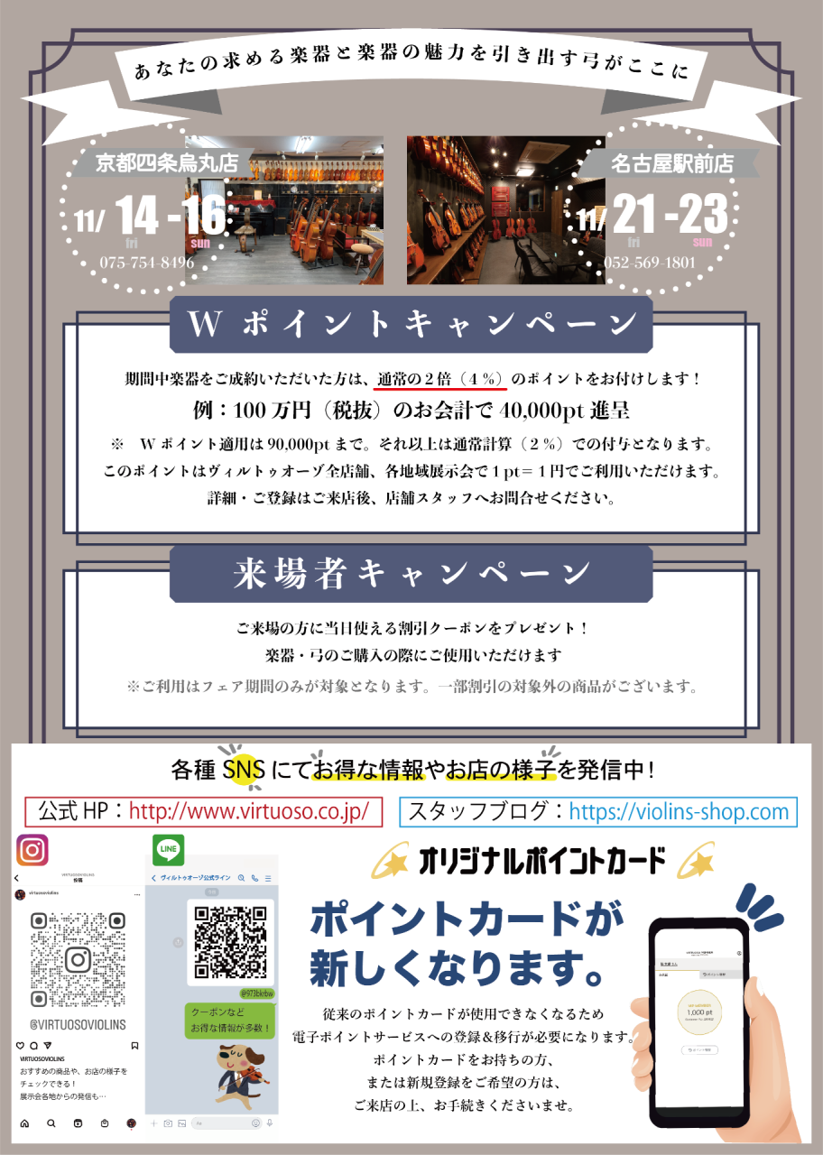 9月末にイタリアにて仕入れた新作イタリーの楽器たちも展示されます!